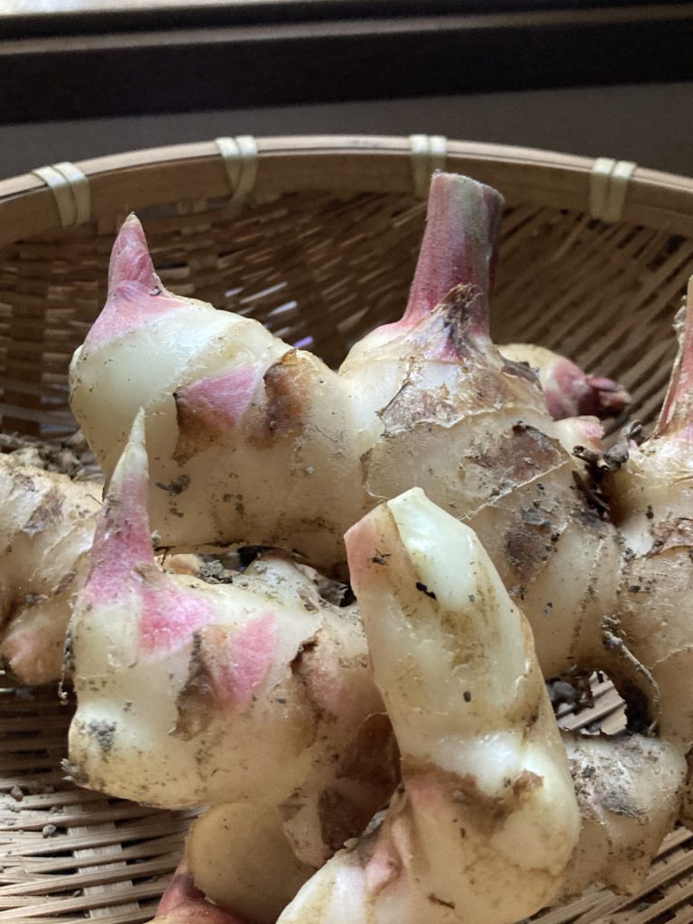 写真は、採れたてショウガと大きくて臭みのない銀杏です。